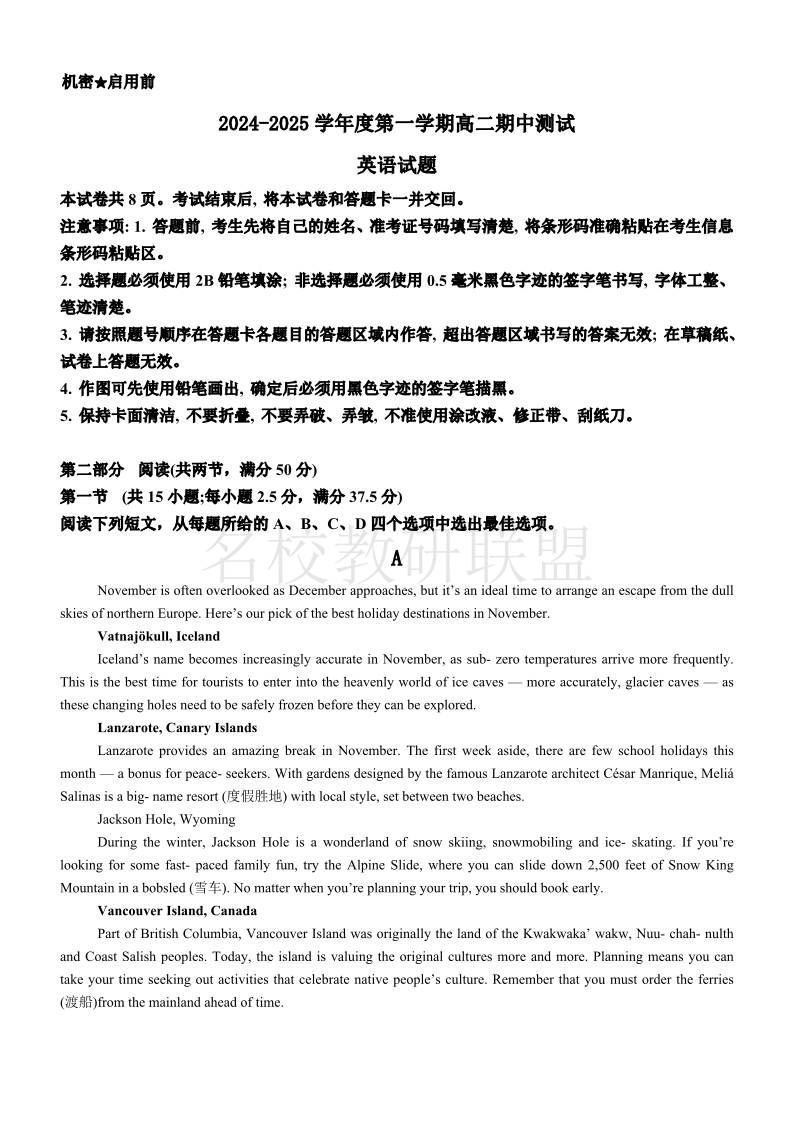 广东省阳江市高新区2024-2025学年高二上学期期中测试 英语