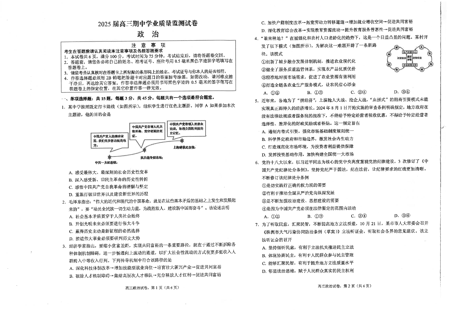 江苏省海安高级中学2025届高三上学期期中考试 政治