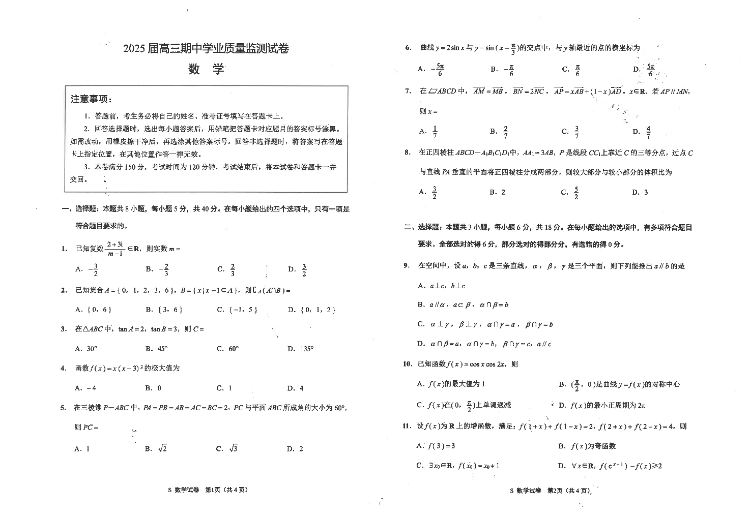 江苏省海安高级中学2025届高三上学期期中考试 数学