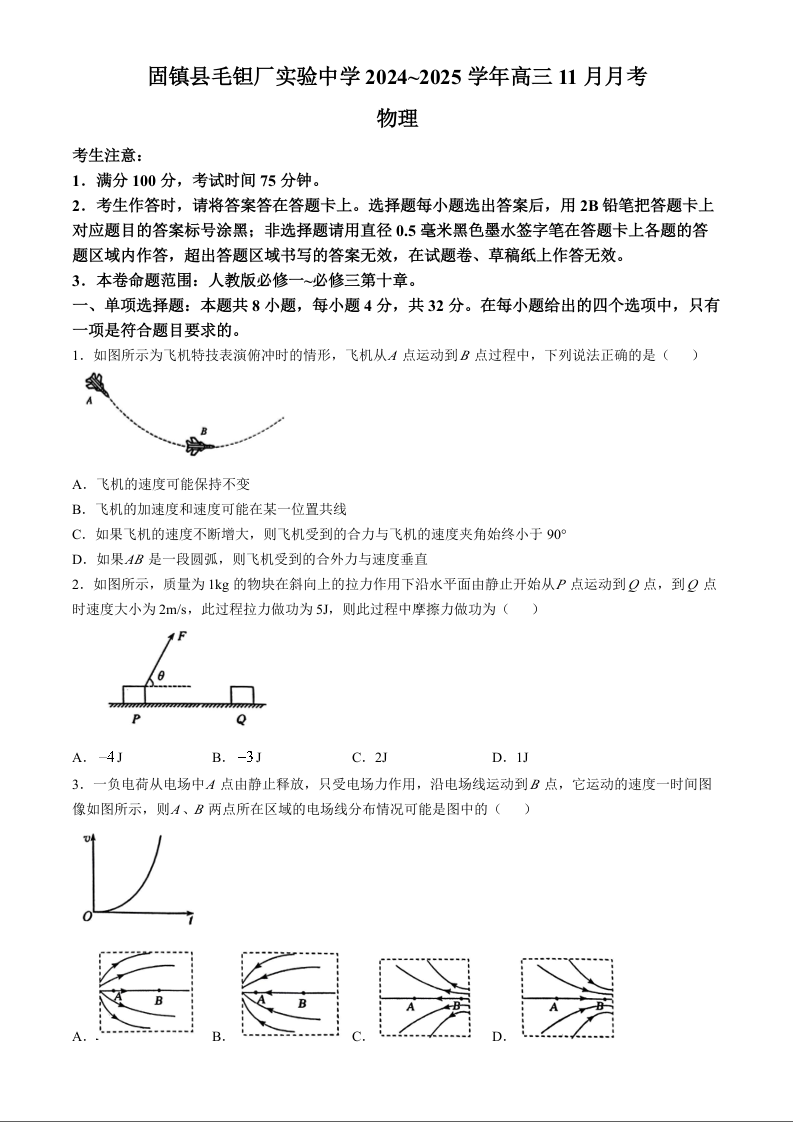 安徽毛坦厂实验中学2025届高三11月期中考试 物理