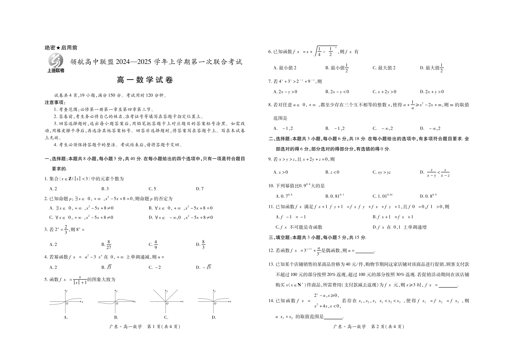 25届12月广东领航高一考试·数学