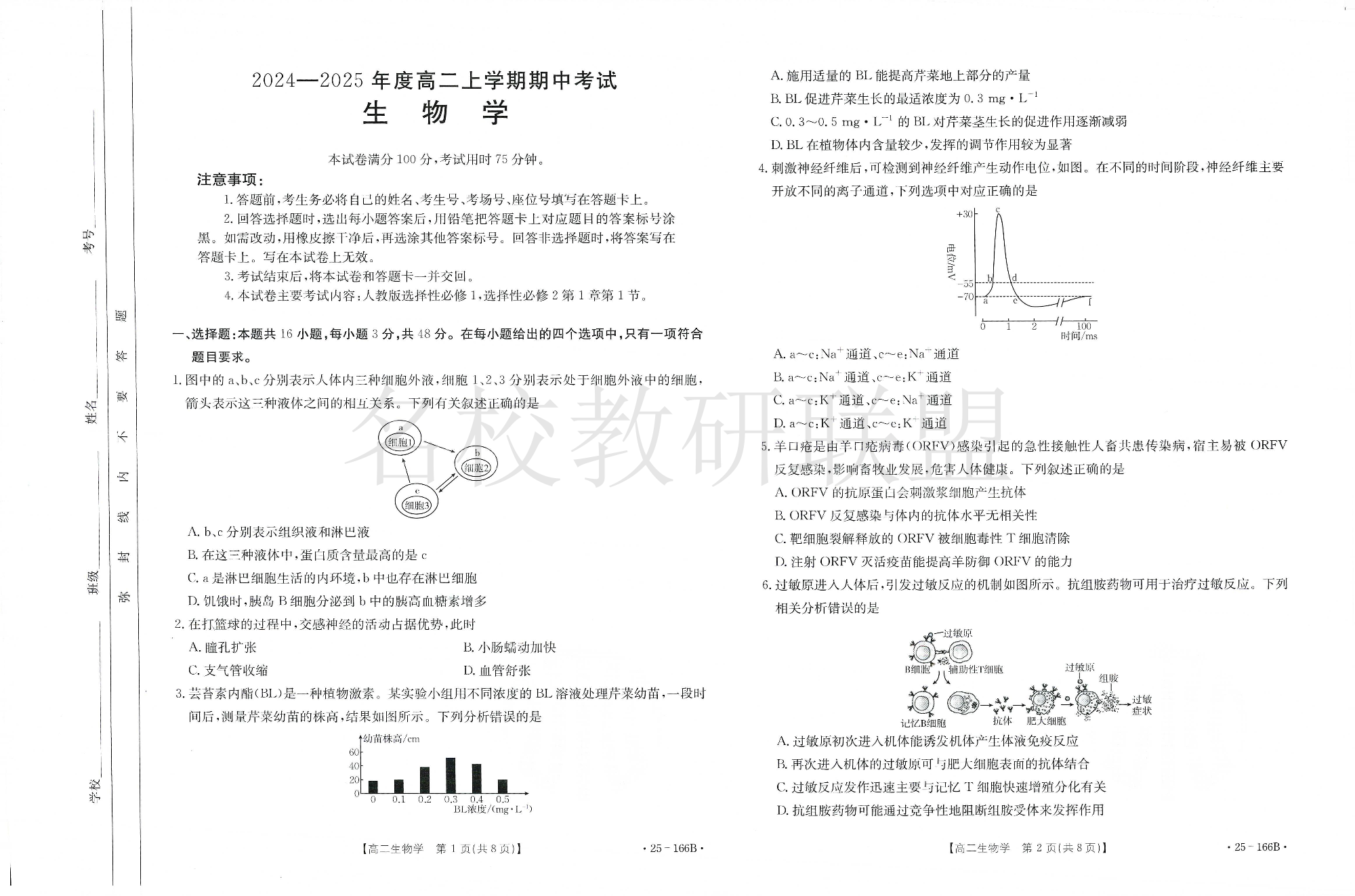 广东省名校联盟2024-2025学年高二上学期期中考试 生物