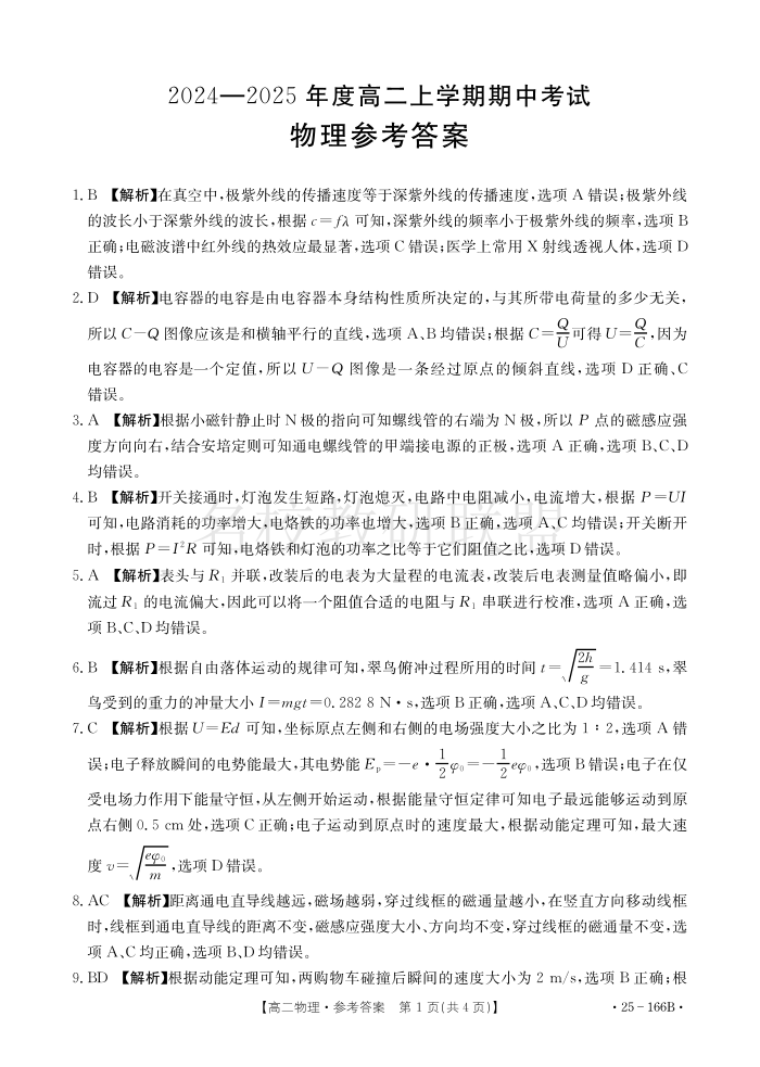 广东省名校联盟2024-2025学年高二上学期期中考试 物理答案