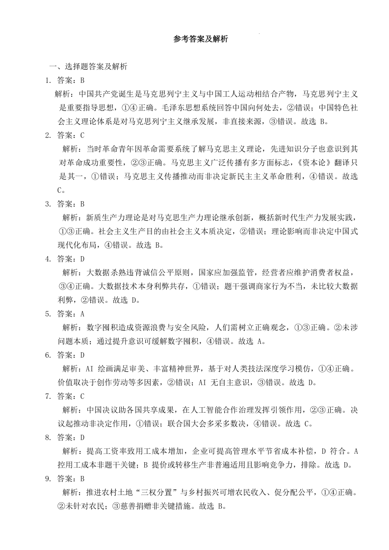 西南大学附中高2025届高三上11月阶段性检测(二)政治答案
