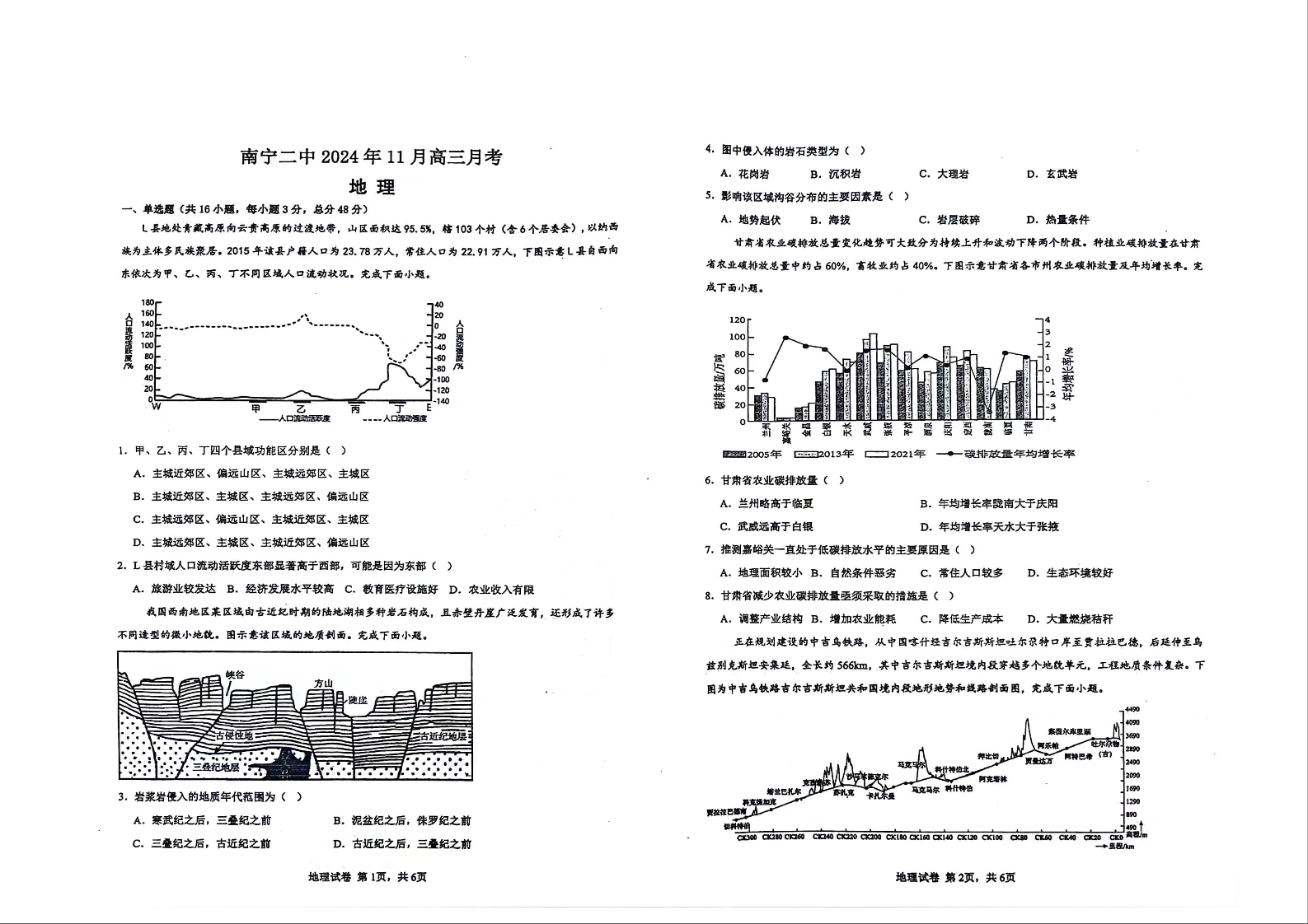 南宁二中2024年11月高三月考 地理