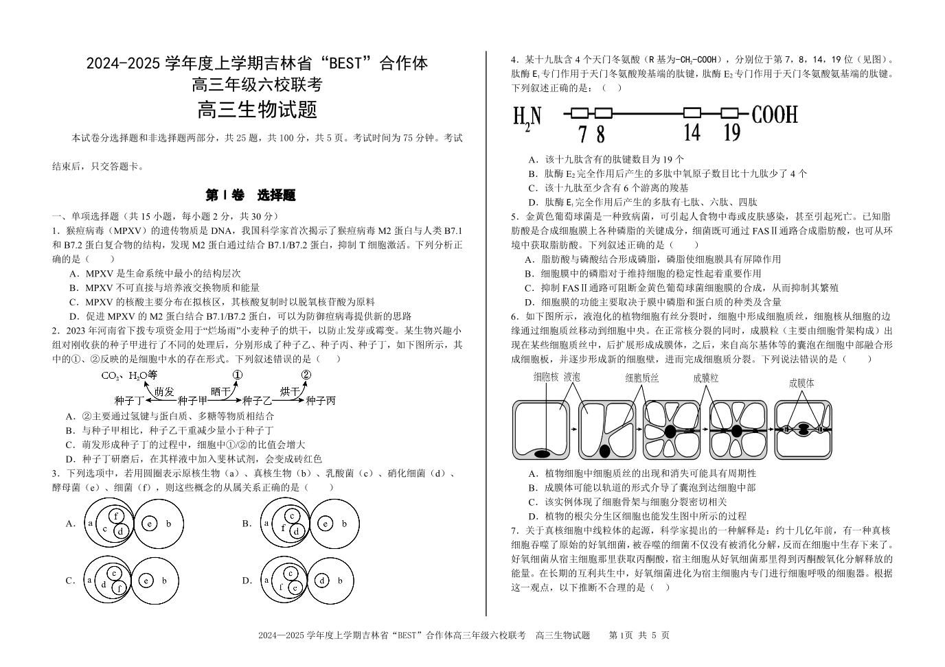 吉林省“BEST”合作体六校2025届高三上学期第三次联考 生物