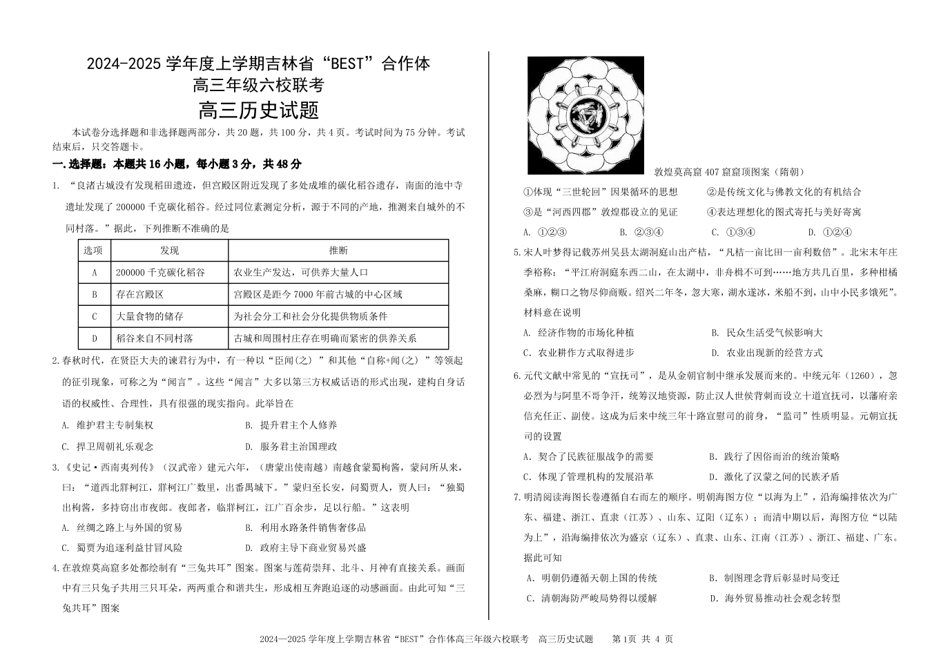 吉林省“BEST”合作体六校2025届高三上学期第三次联考 历史
