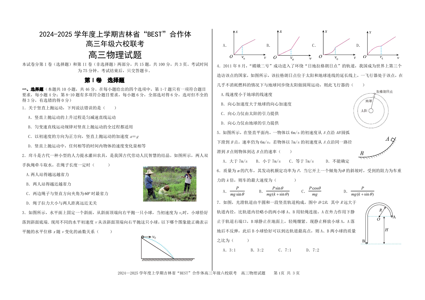 吉林省“BEST”合作体六校2025届高三上学期第三次联考 物理