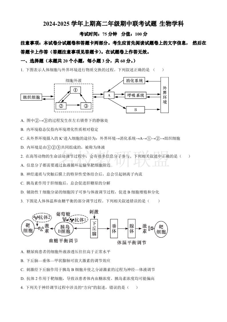 河南省郑州十校联考2024-2025学年高二上学期11月期中考试 生物