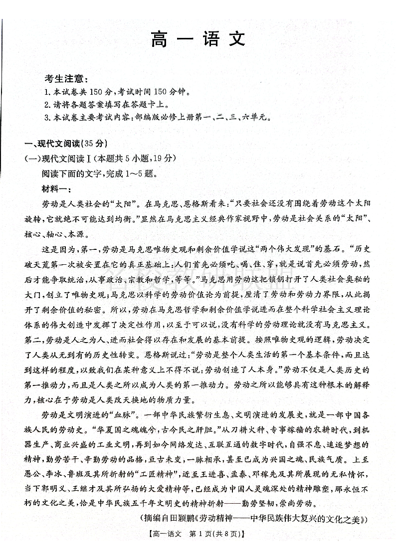 广东省佛山市H7联盟2024-2025学年高一上学期12月联考 语文