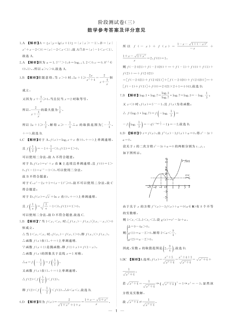 东北三省2024-2025学年高一上学期阶段测试三 数学答案