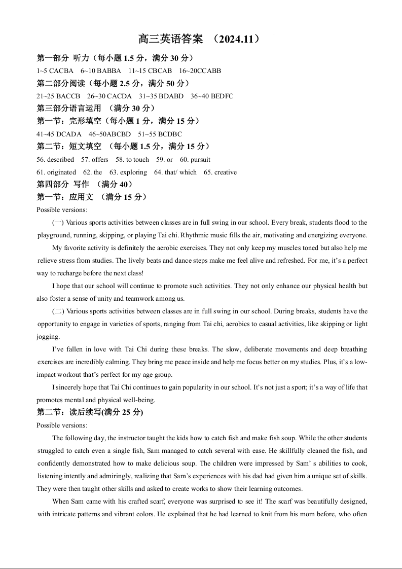 山东省威海市文登区2024-2025学年高三上学期第一次模拟考试 英语答案