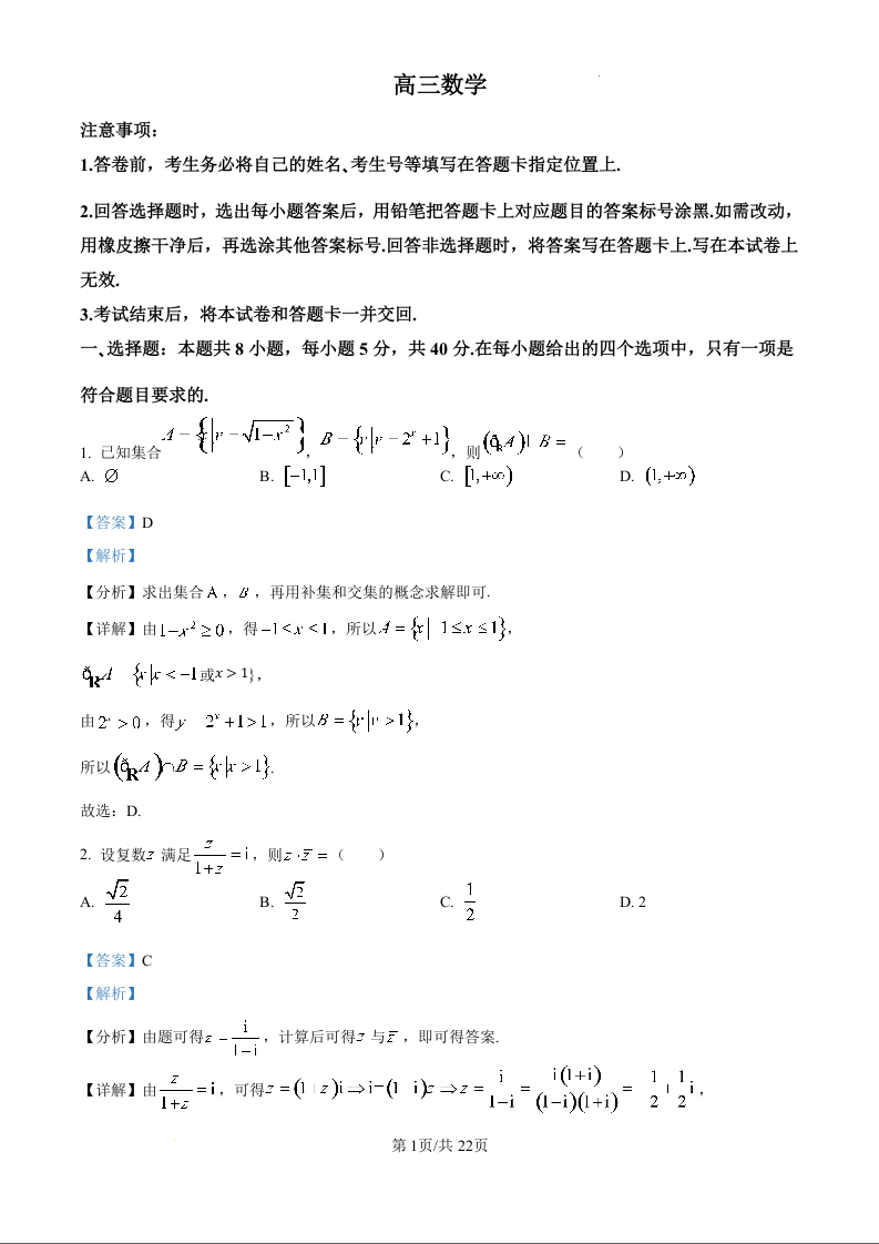 山东省威海市文登区2024-2025学年高三上学期第一次模拟考试 数学答案