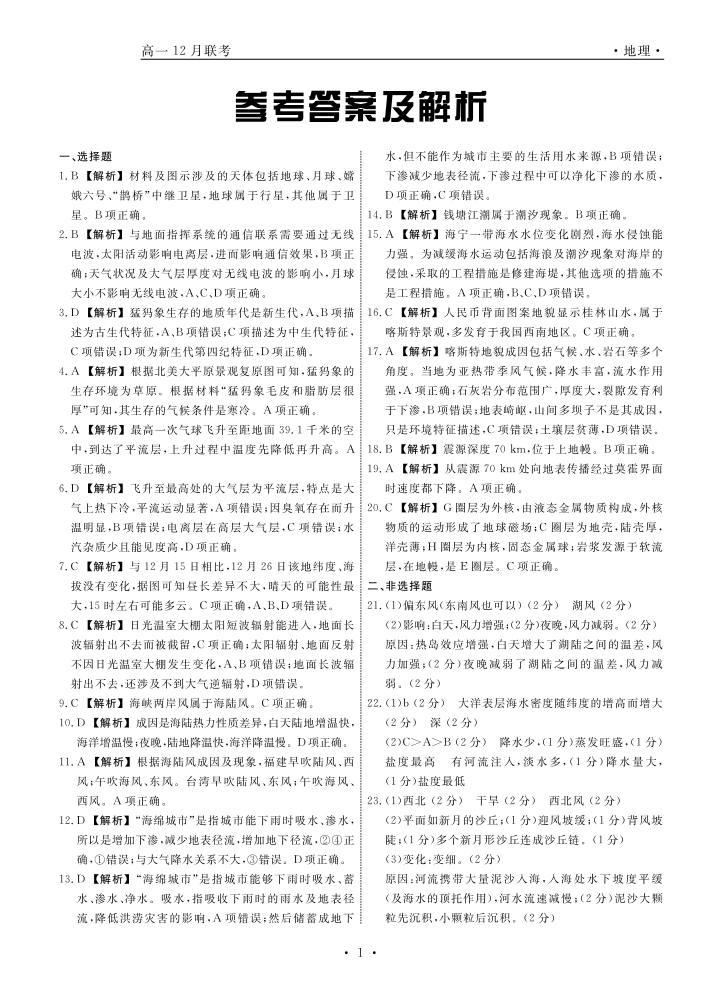 辽宁省名校联盟2024年高一12月份联合考试 地理答案