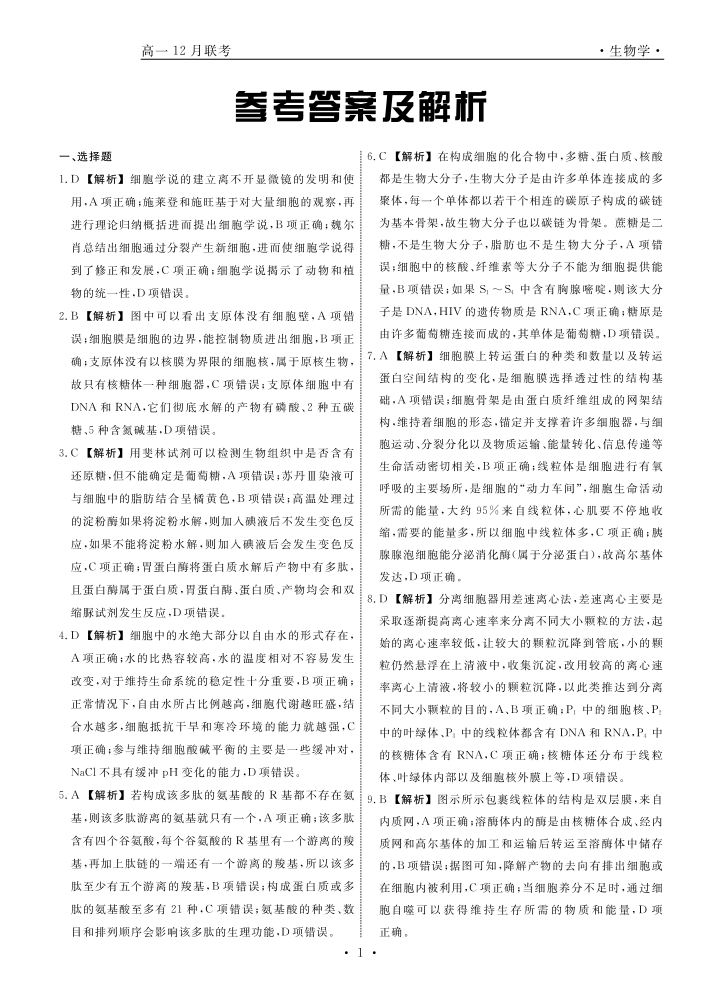 辽宁省名校联盟2024年高一12月份联合考试 生物答案