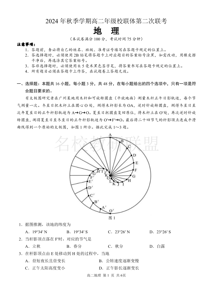 广西河池市2024年秋季学期高二年级校联体第二次联考 地理
