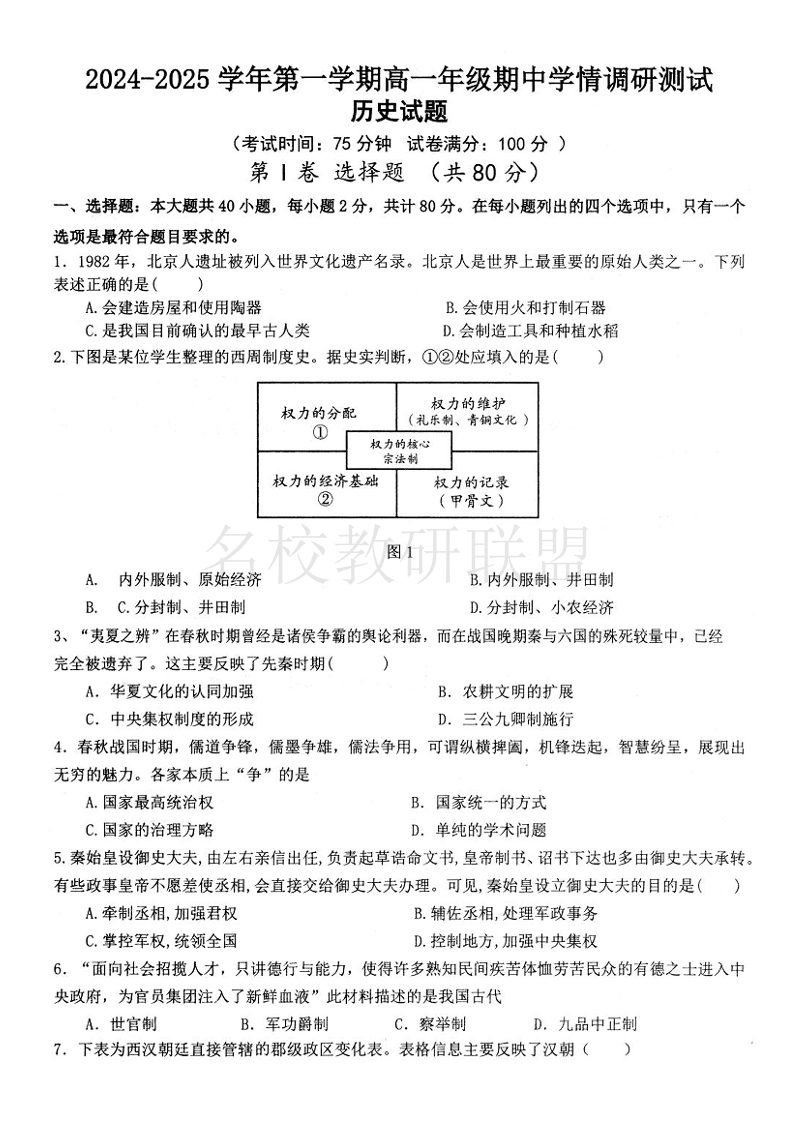 江苏省扬州市高邮市2024-2025学年高一上学期11月期中考试 历史