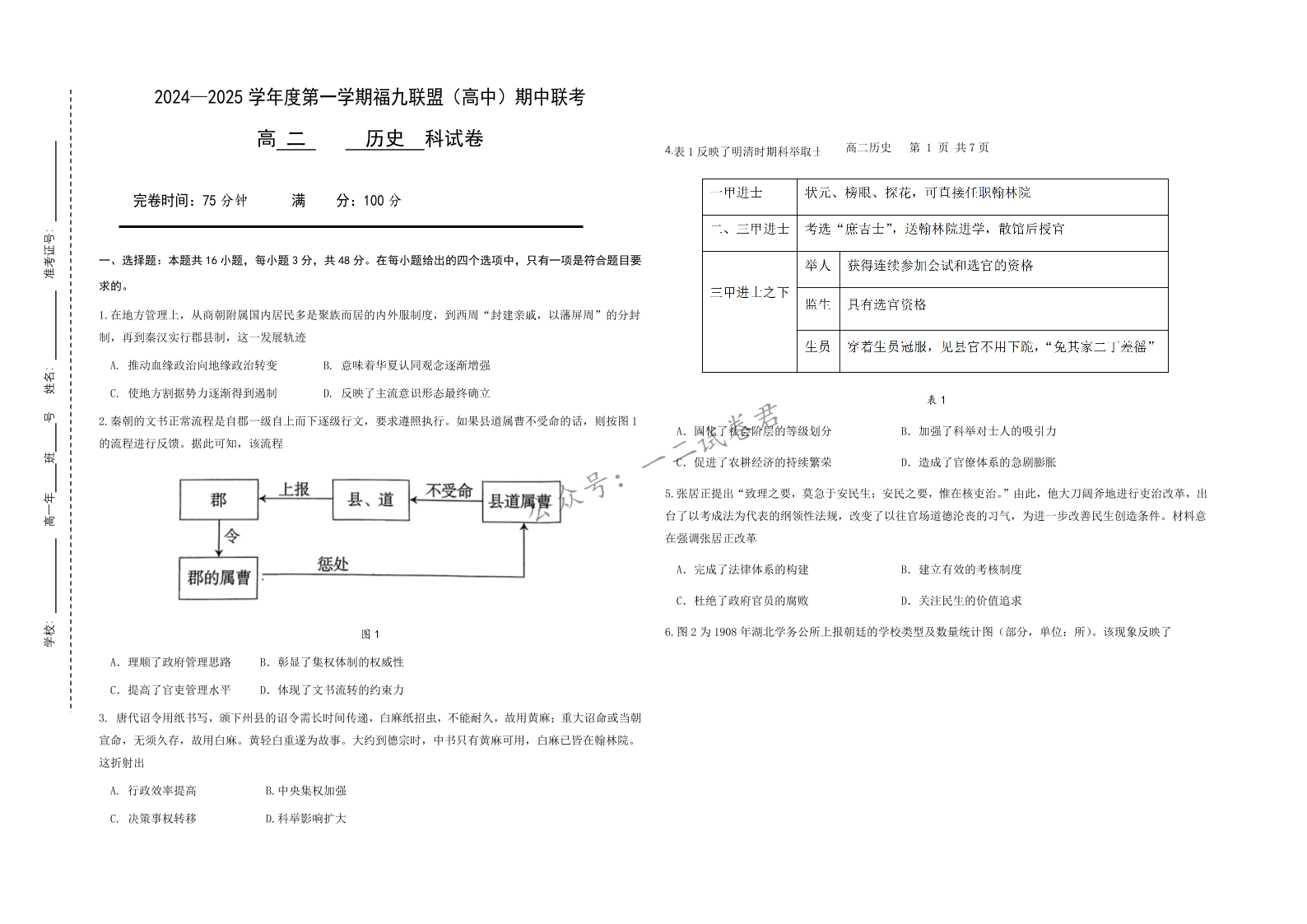 福建省福州九校2024-2025学年高二上学期11月期中联考 历史