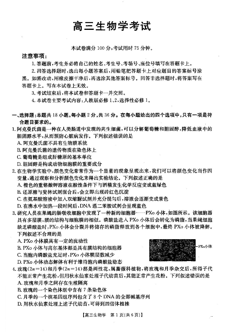 湖北省部分学校2024-2025学年高三上学期12月联考 生物