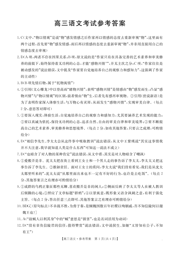 湖北省部分学校2024-2025学年高三上学期12月联考 语文答案