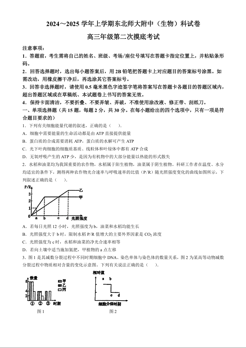 吉林省东北师范大学附属中学2025届高三上学期第二次摸底考试 生物