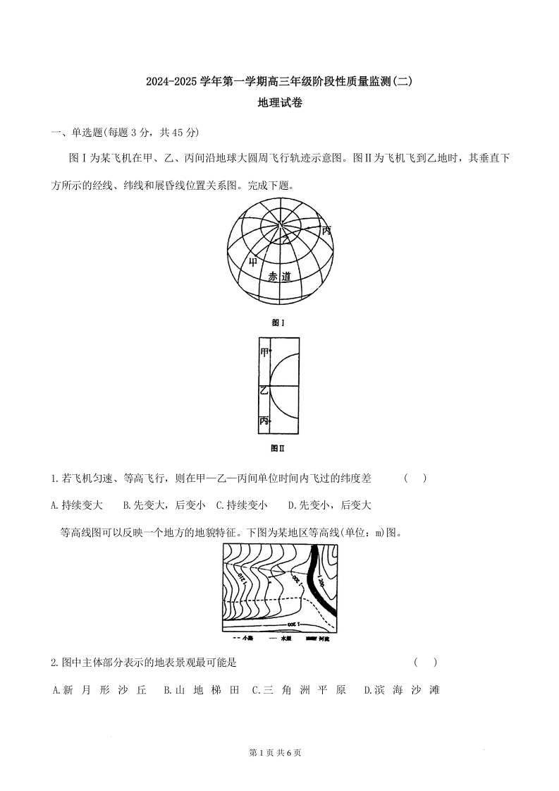 天津市第二十五中学2025届高三上学期第二次月考 地理
