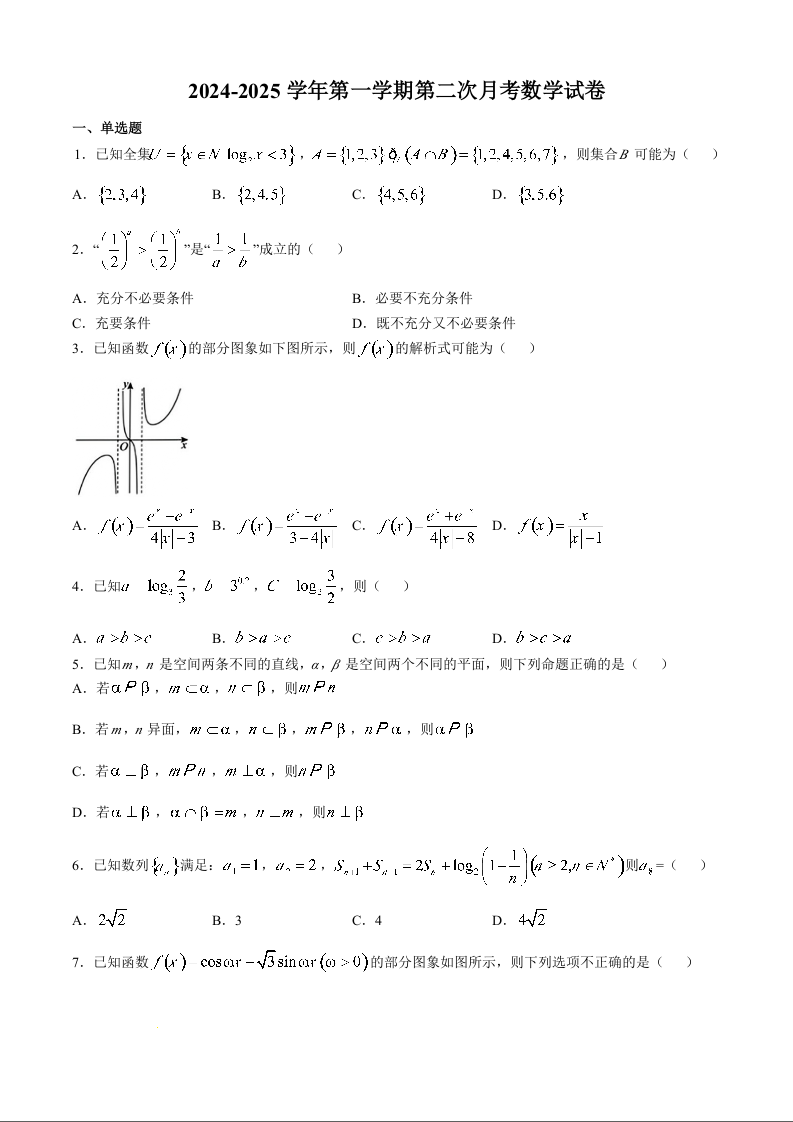 天津市第二十五中学2025届高三上学期第二次月考 数学