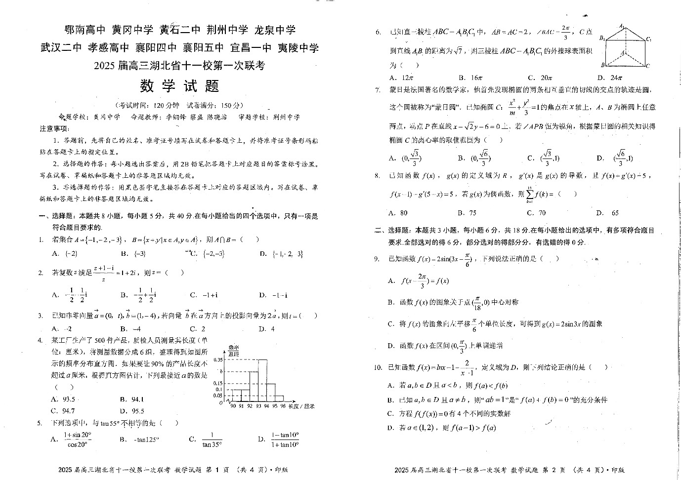 2025届高三湖北省十一校第一次联考 数学