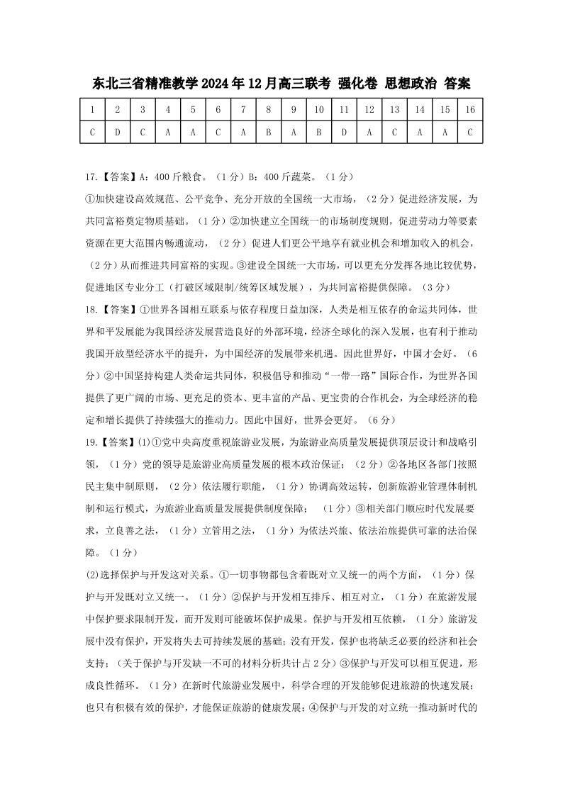 东北三省精准教学2025届高三上学期12月联考(强化卷)政治答案