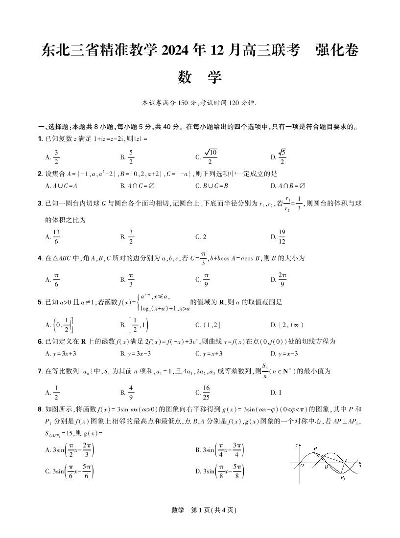 东北三省精准教学2025届高三上学期12月联考(强化卷)数学