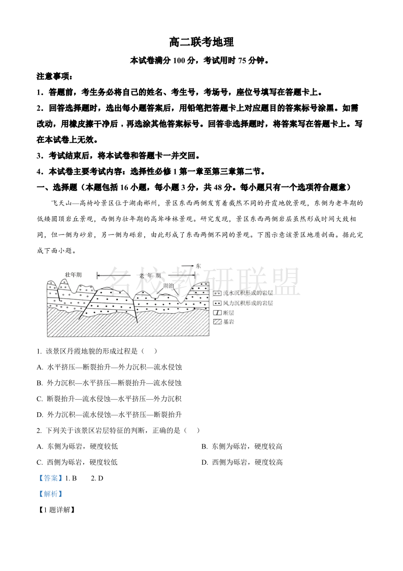 贵州省黔东南州2024-2025学年高二上学期11月期中考试 地理答案
