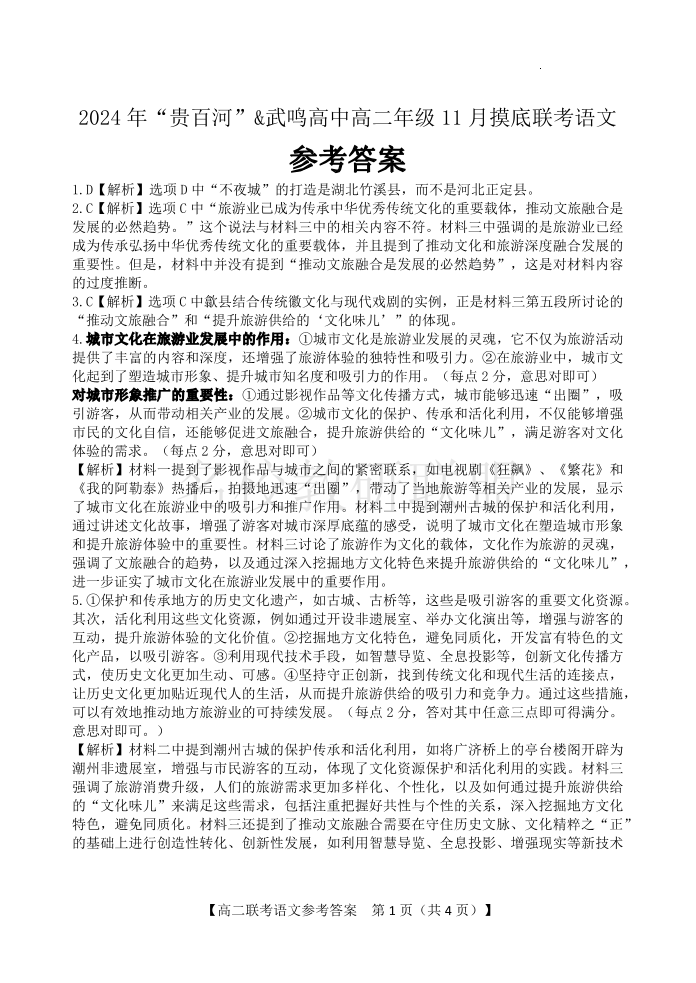 2023级“贵百河—武鸣高中”11月份高二年级新高考月考测试 语文答案
