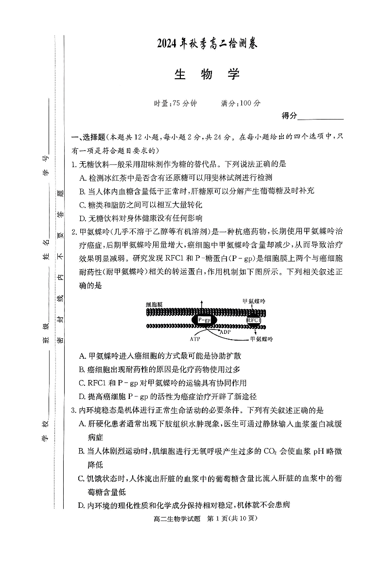 湖南省长郡十八校联盟2024年12月高二联考 生物