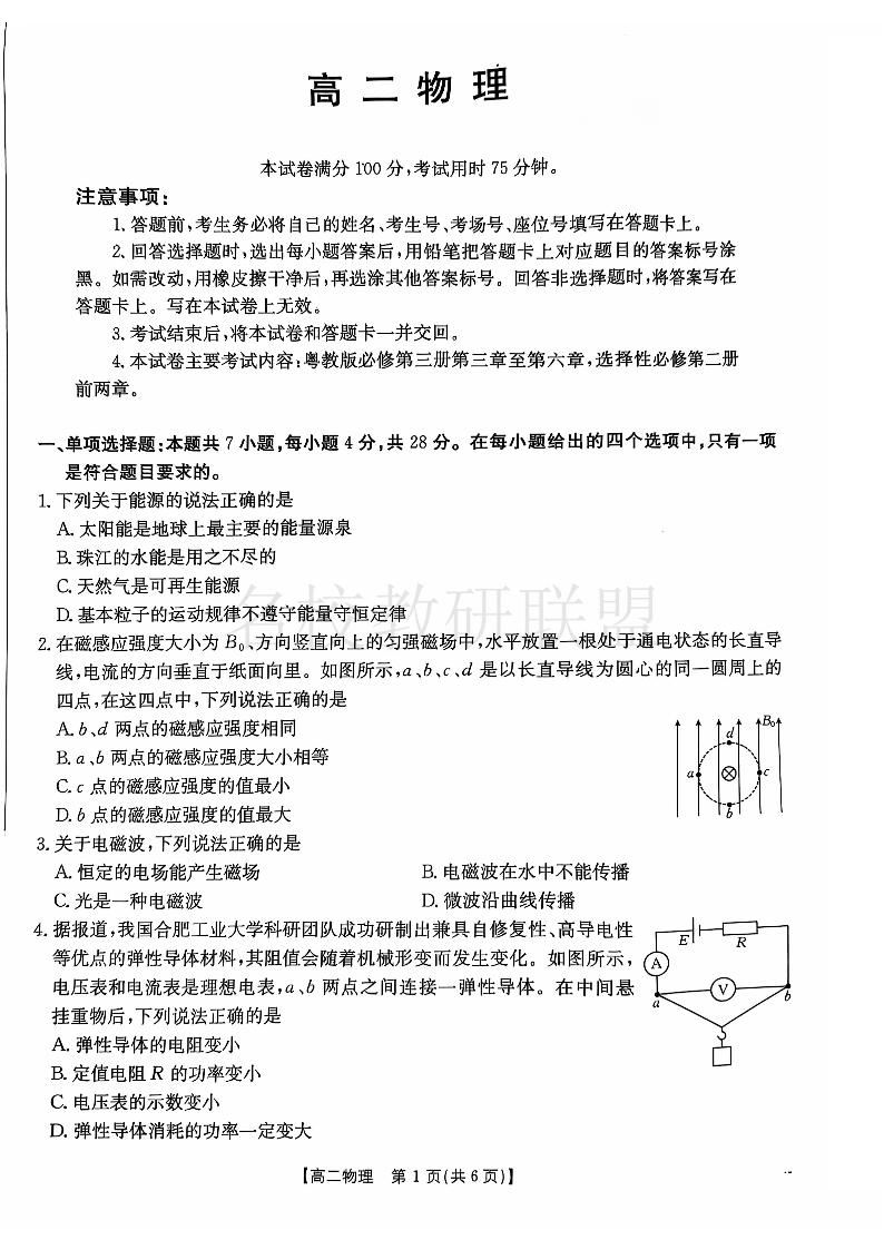 广东省佛山市H7联盟2024-2025学年高二上学期期中联考 物理