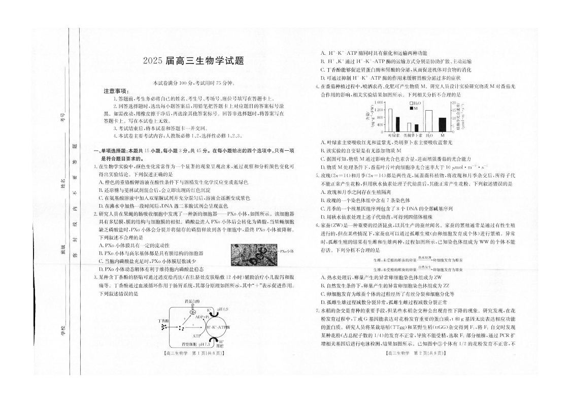 四川省部分学校2024-2025学年高三12月联考 生物