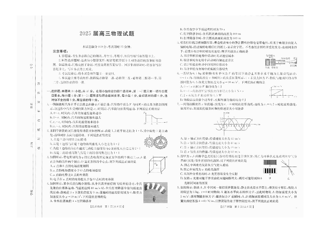 四川省部分学校2024-2025学年高三12月联考 物理