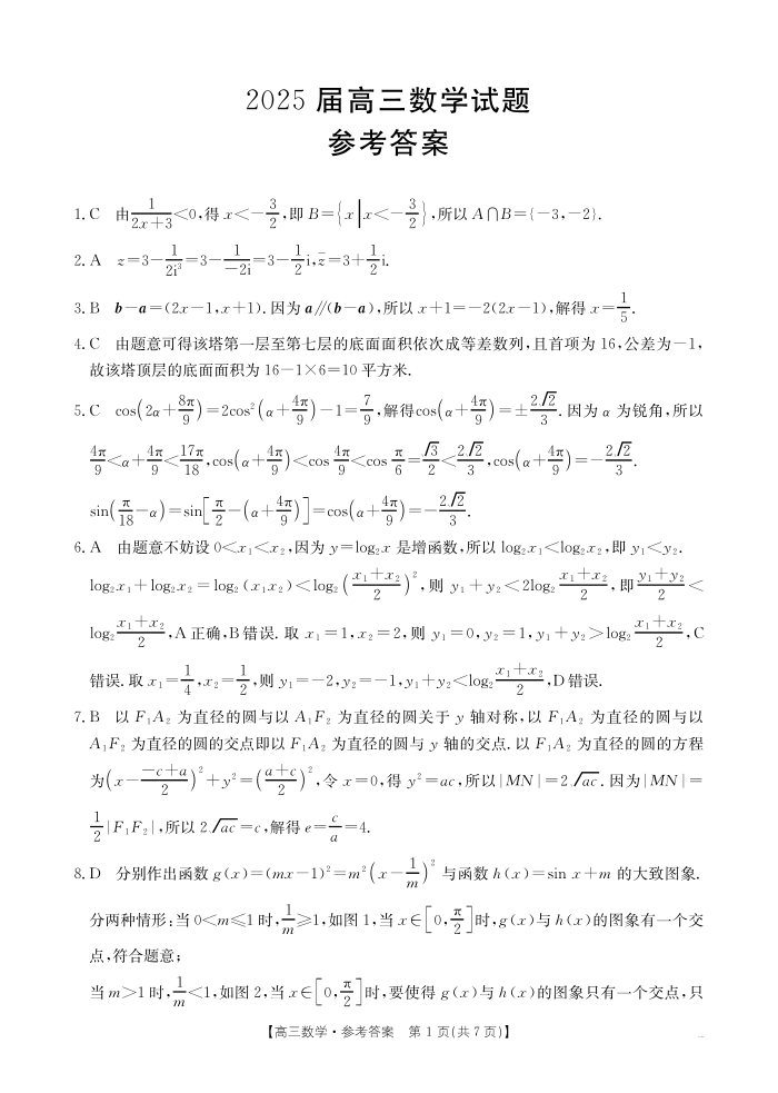四川省部分学校2024-2025学年高三12月联考 数学答案