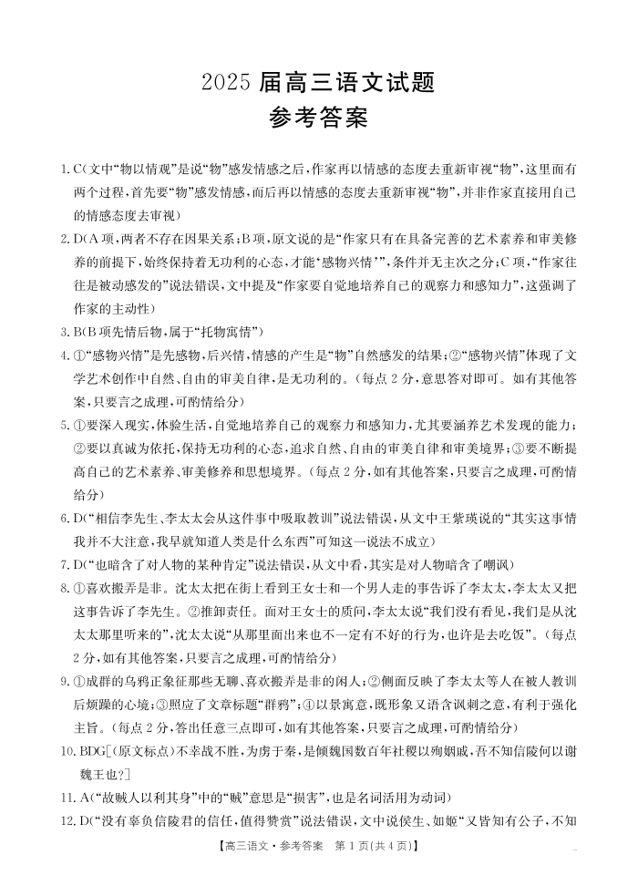 四川省部分学校2024-2025学年高三12月联考 语文答案