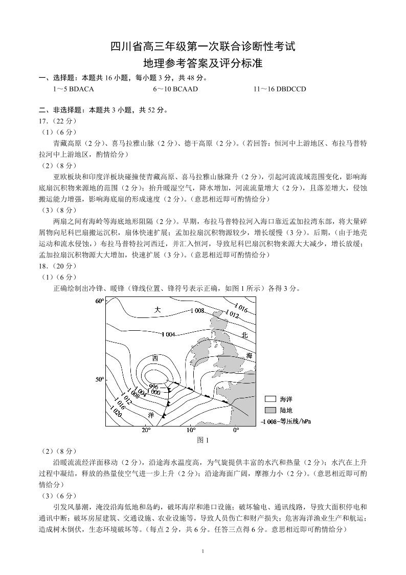 四川省2025届高三年级第一次联合诊断性考试 地理答案