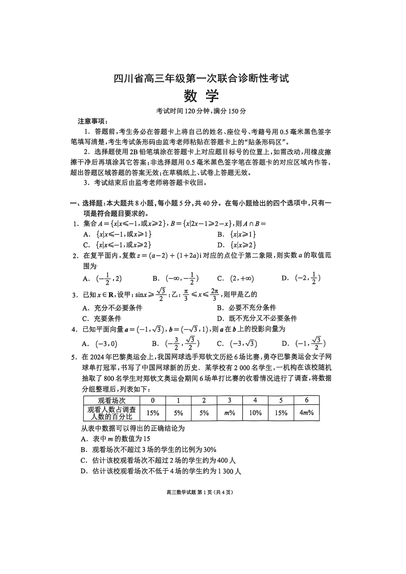 四川省2025届高三年级第一次联合诊断性考试 数学