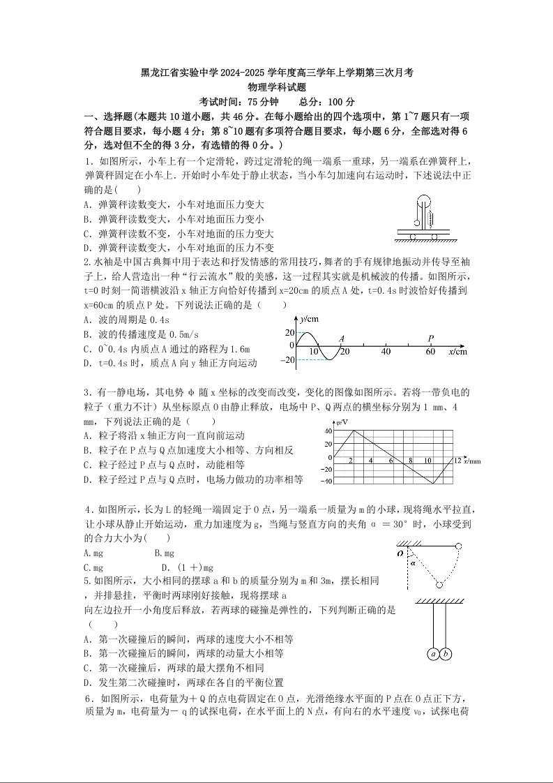 黑龙江省实验中学2024-2025学年高三上学期第三次月考 物理