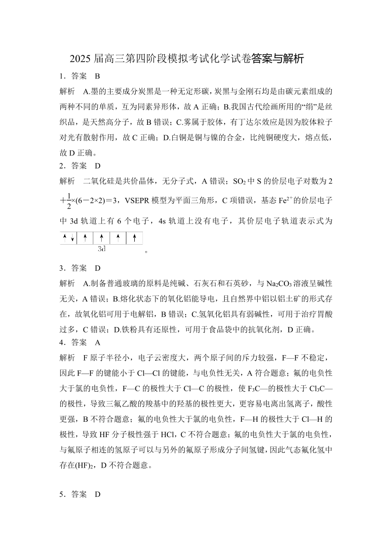 湖南省长沙市周南中学2025届高三第四阶段模拟考试 化学答案