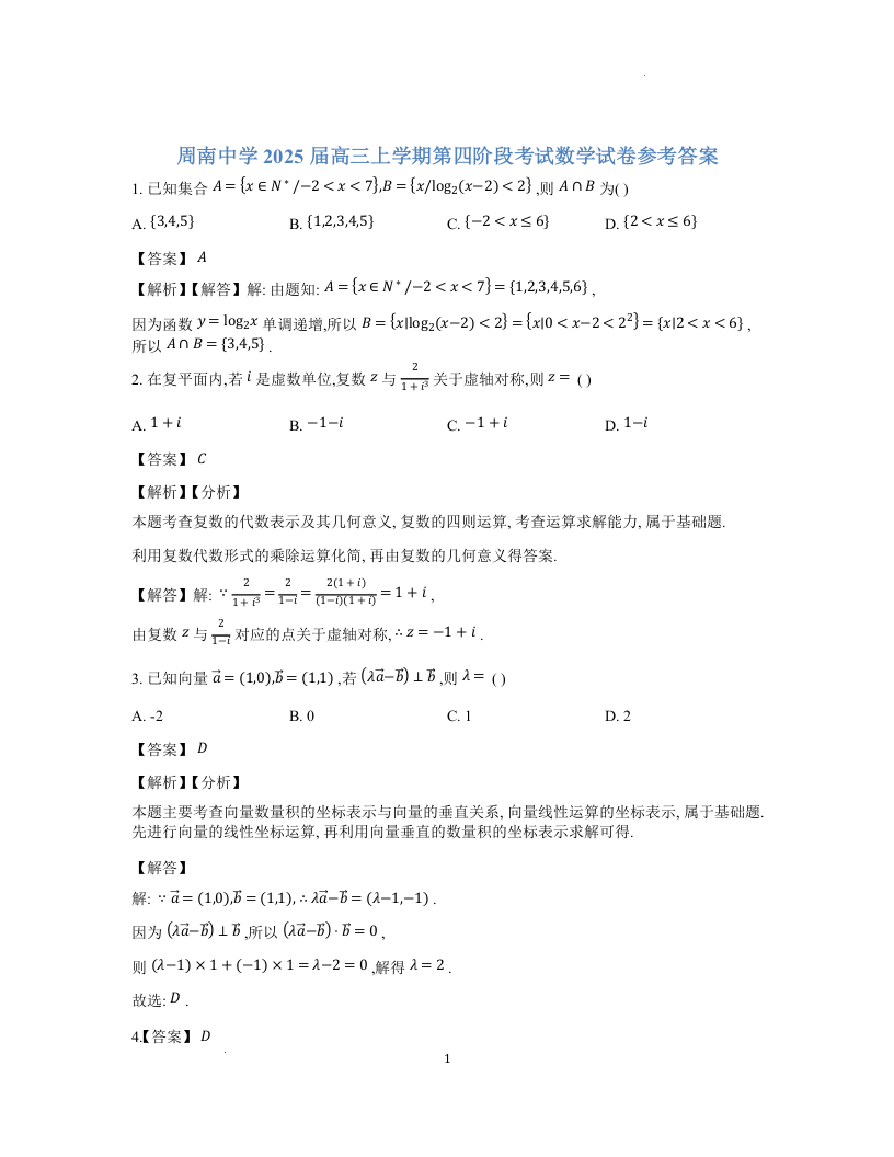 湖南省长沙市周南中学2025届高三第四阶段模拟考试 数学答案