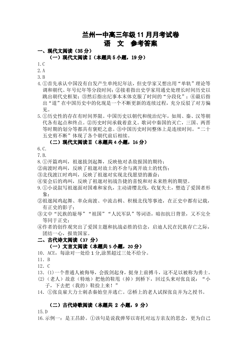 甘肃省兰州市第一中学2025届高三年级11月月考 语文答案