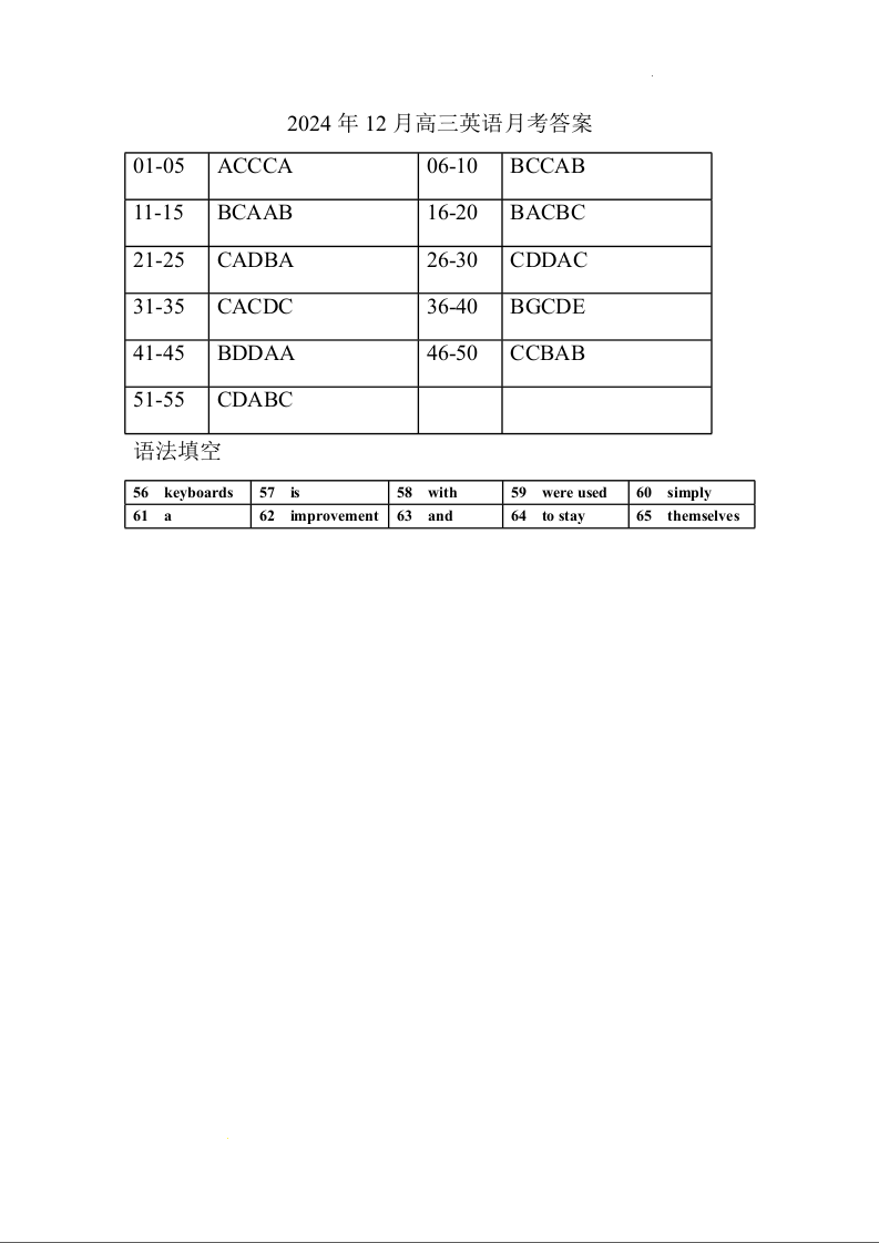 黑龙江省佳木斯市第八中学2025届高三上学期12月月考 英语答案