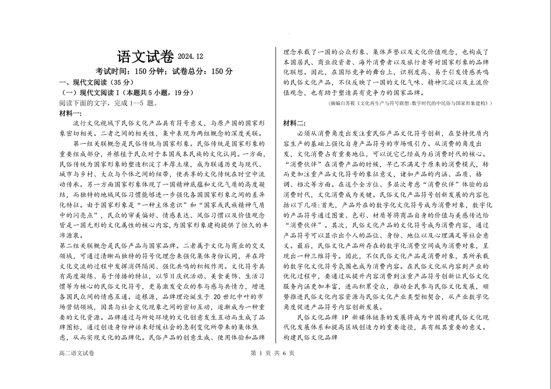 黑龙江省佳木斯市第八中学2025届高三上学期12月月考 语文