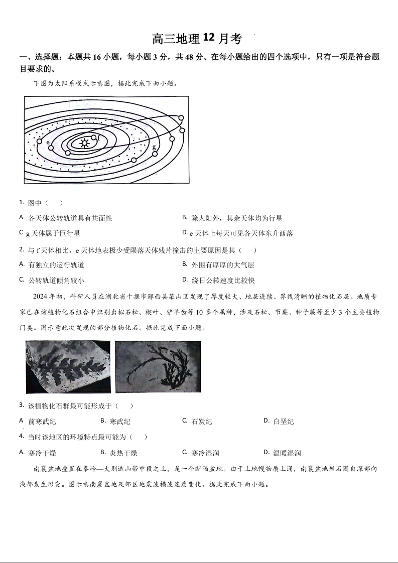 吉林省通化市梅河口市第五中学2025届高三上学期12月月考 地理