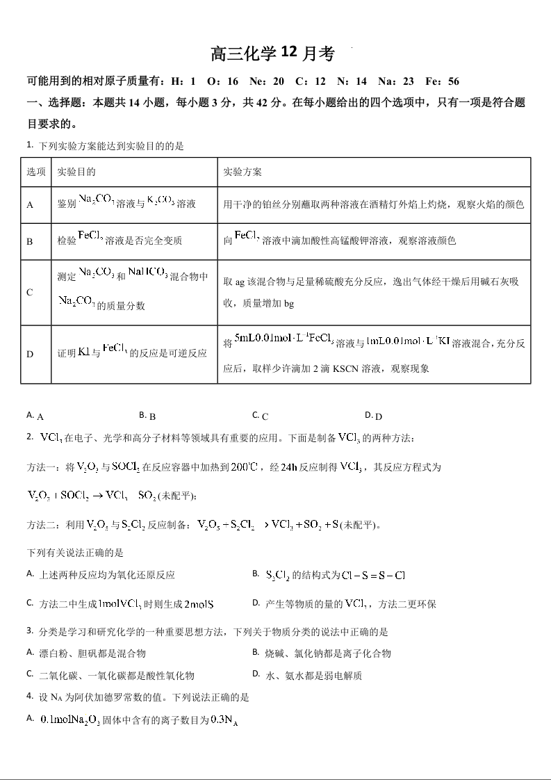 吉林省通化市梅河口市第五中学2025届高三上学期12月月考 化学