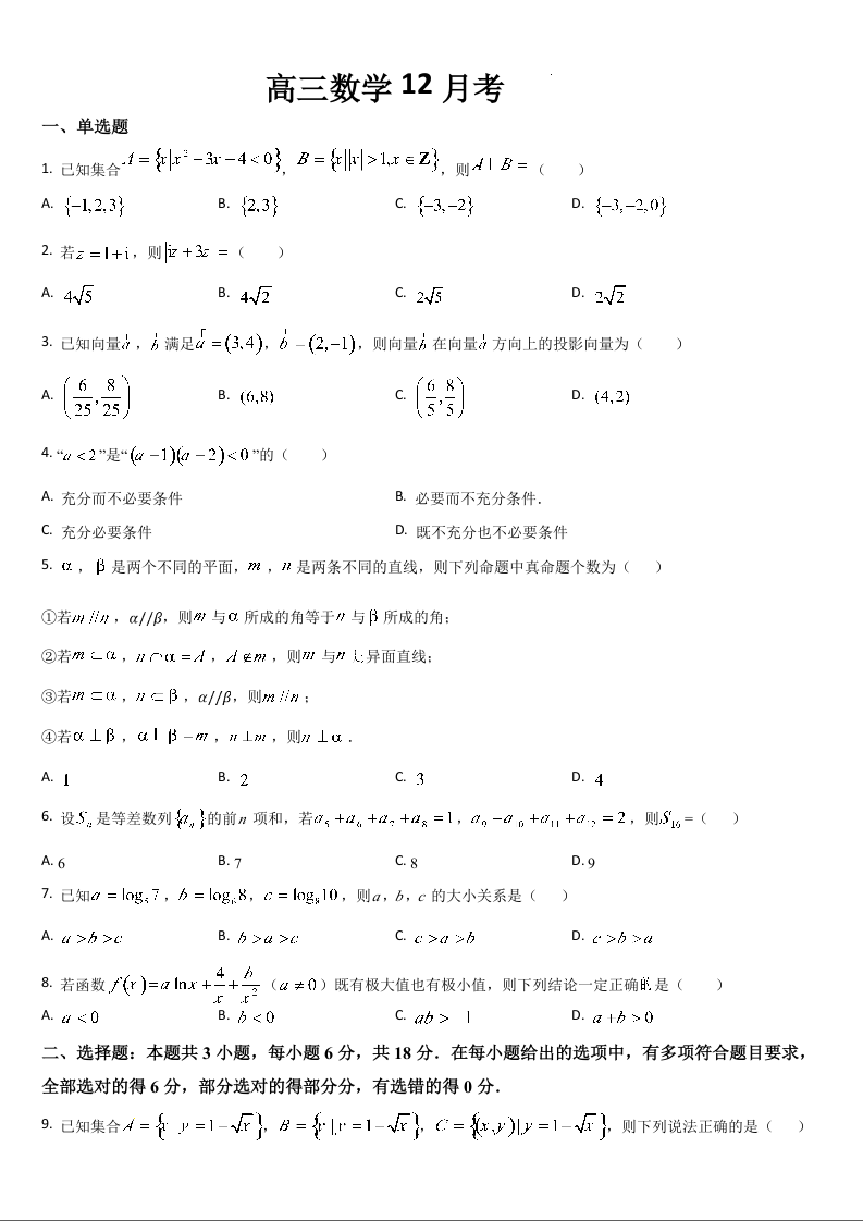 吉林省通化市梅河口市第五中学2025届高三上学期12月月考 数学