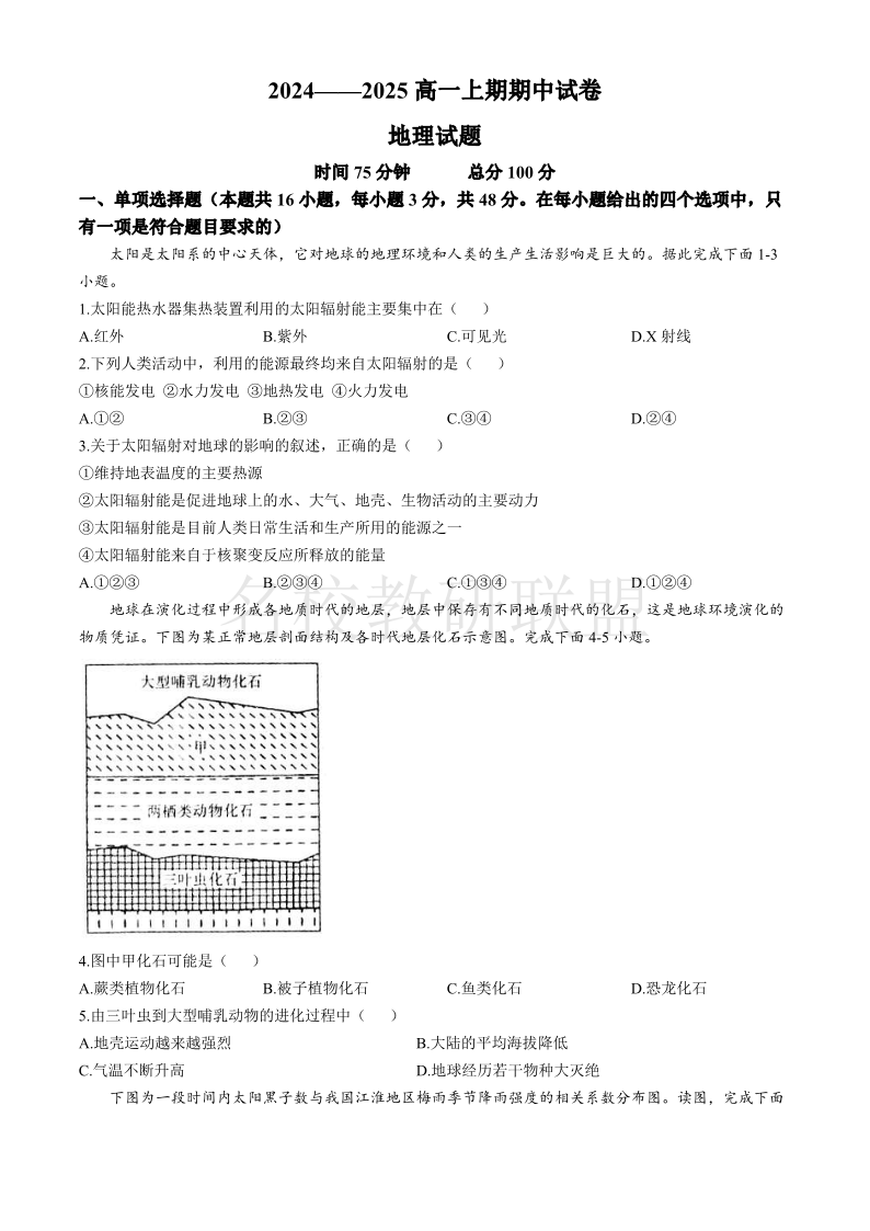 河南省周口市鹿邑县2024-2025学年高一上学期11月期中考试 地理